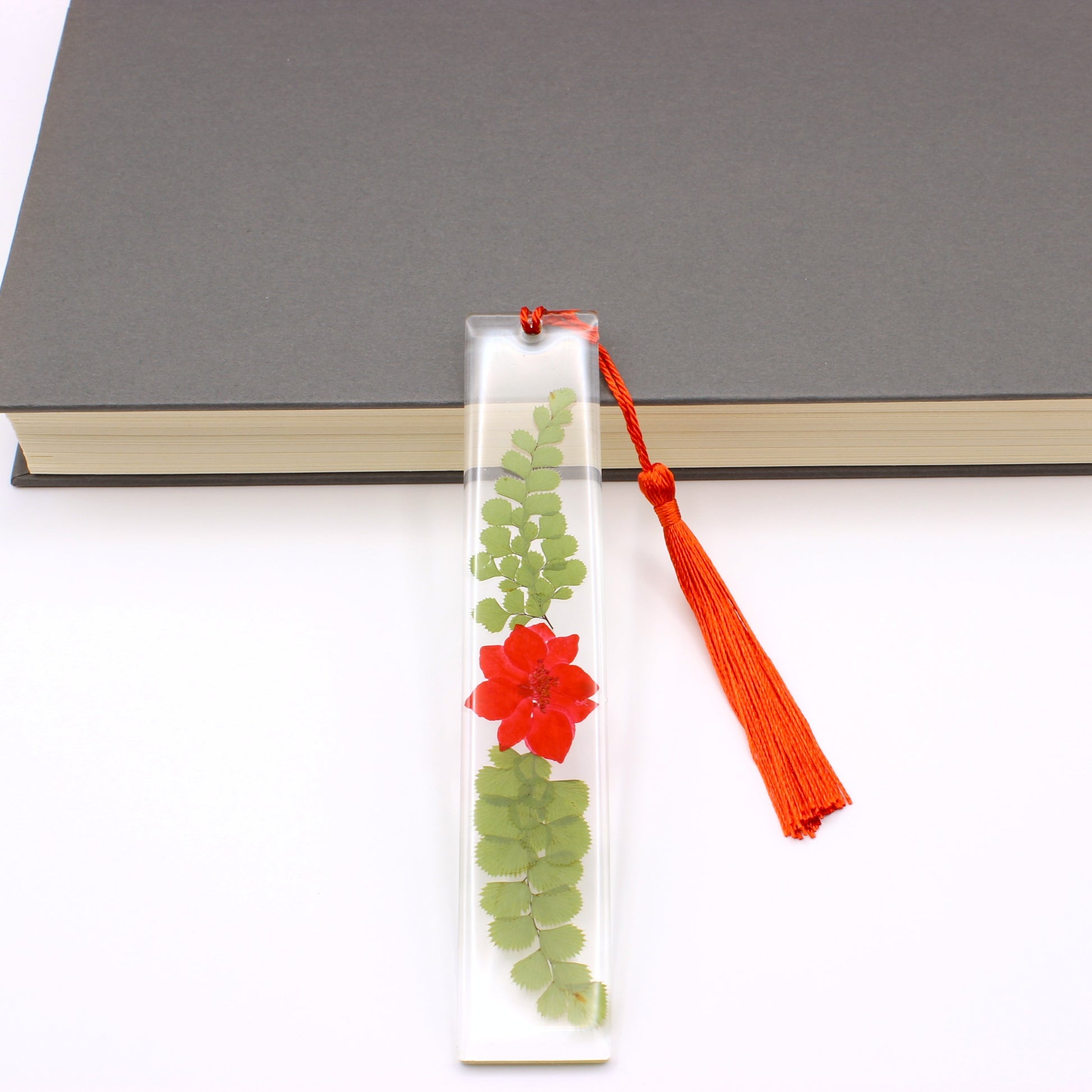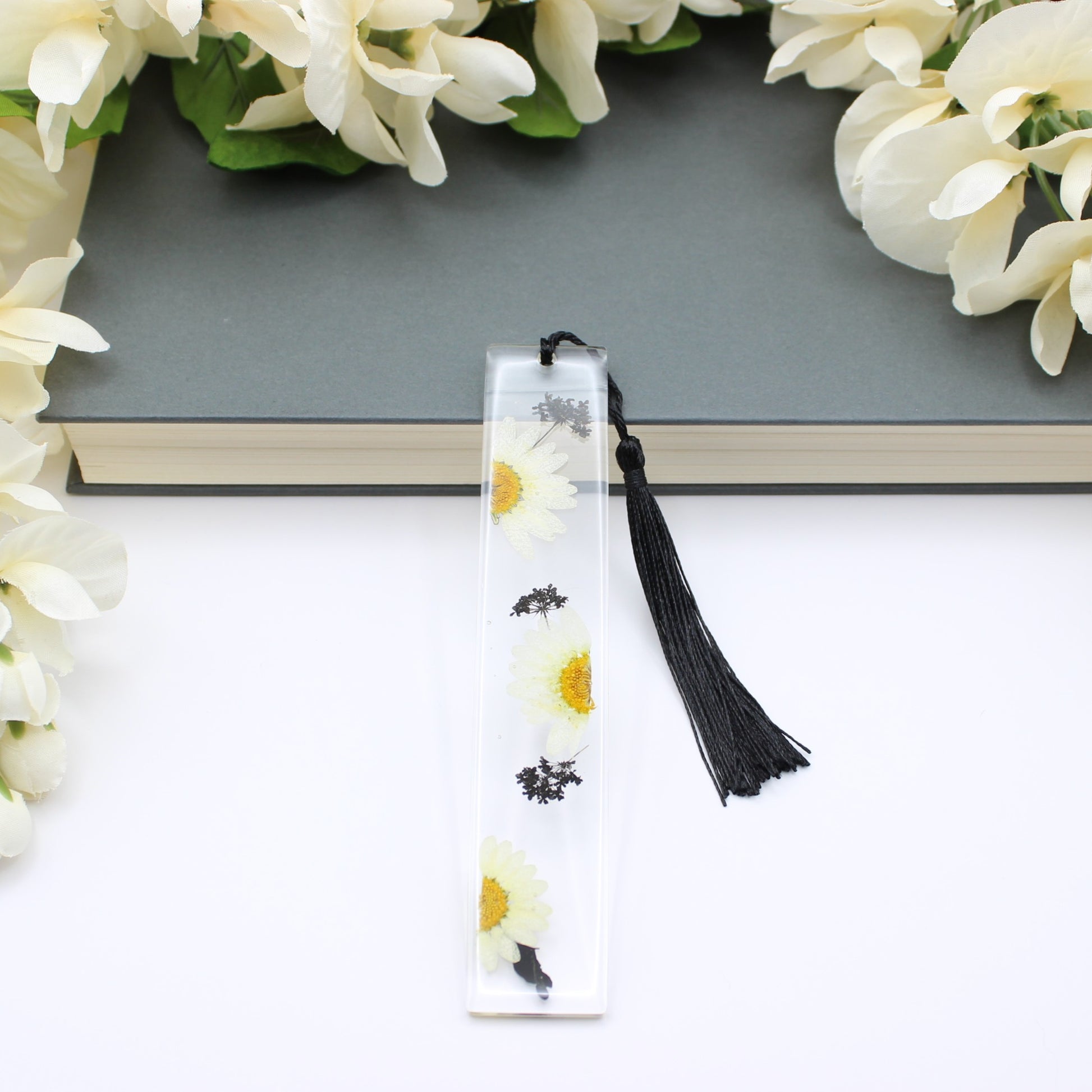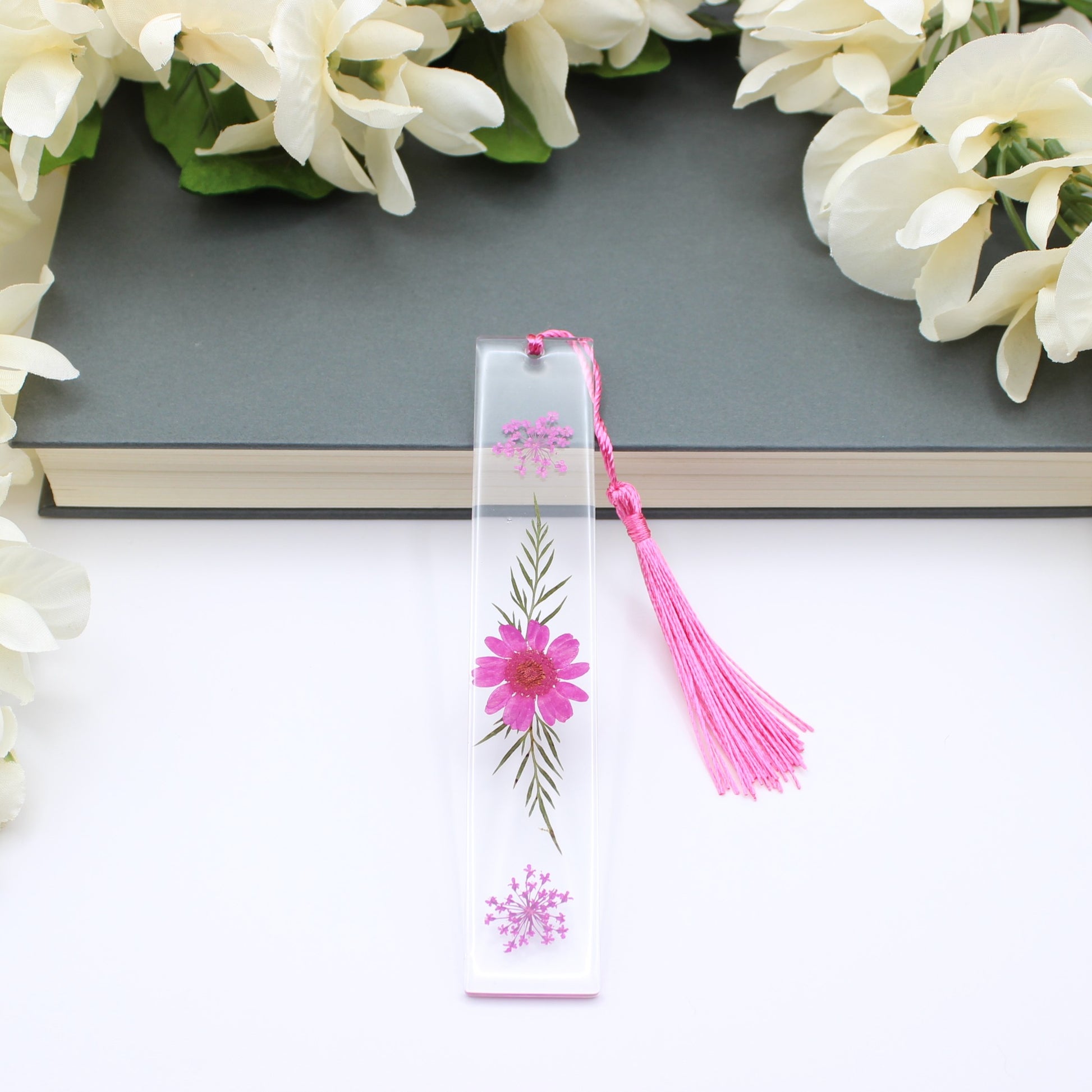 These bookmarks are a unique addition to any book lover's collection. Featuring beautiful pressed flowers encased in resin they are a stunning piece. Multiple colors and styles available!