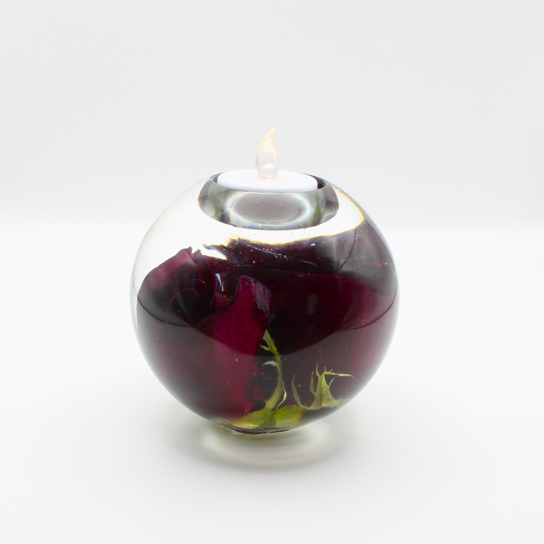 These Large Sphere Tealight Holders are unique, handmade pieces crafted from resin and embedded with delicate real flowers. Their elegant design create a warm and inviting atmosphere and are perfect as a distinctive decorative accent or as a thoughtful gift. Each holder showcases natural beauty preserved in artful detail; no two are the same.
