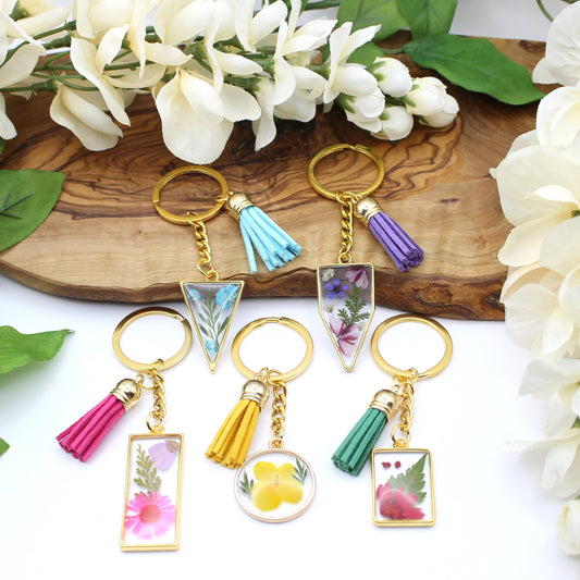 Pressed Flower Keychains-Gold