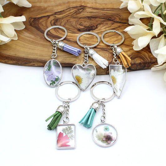 Pressed Flower Keychains-Silver